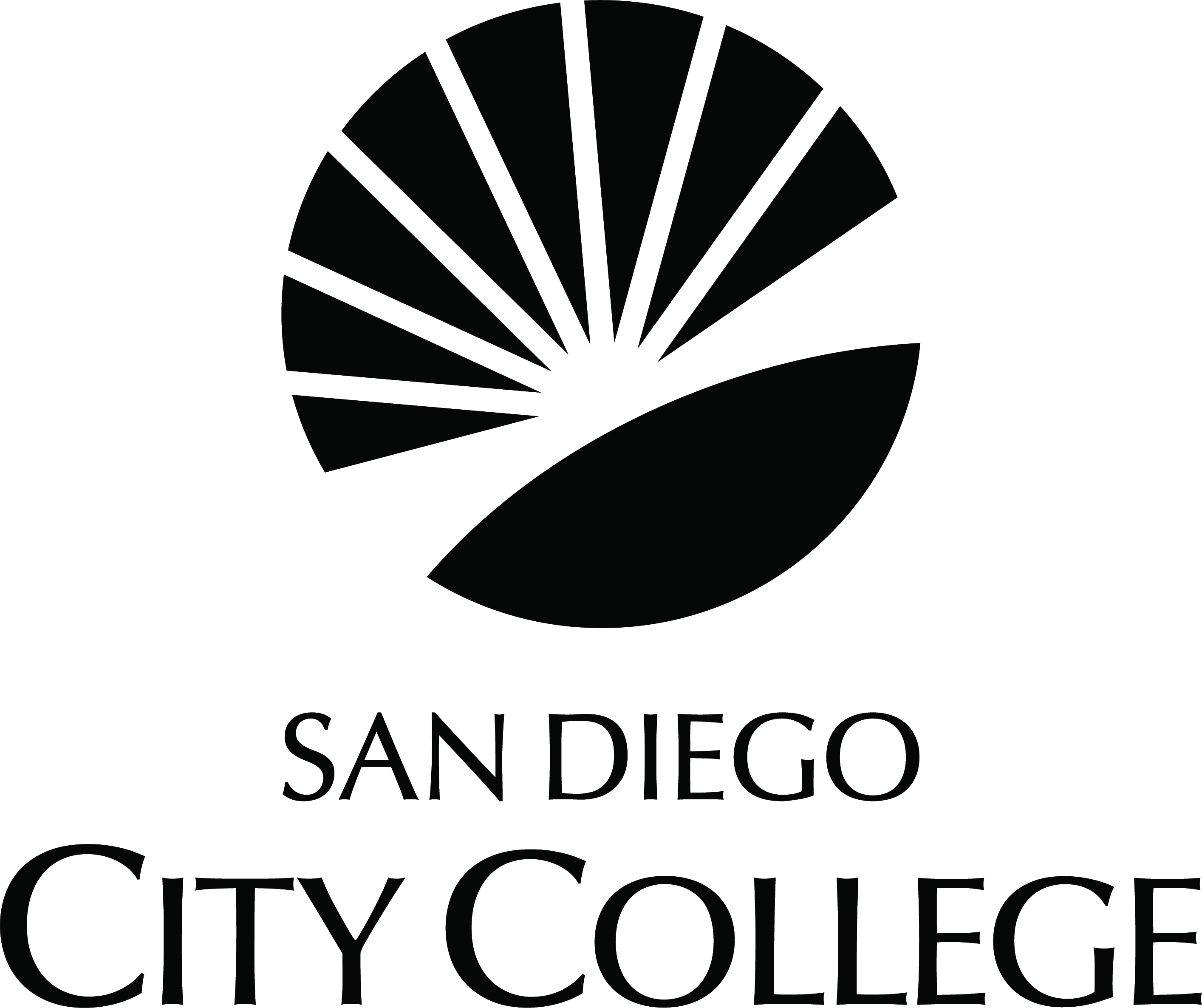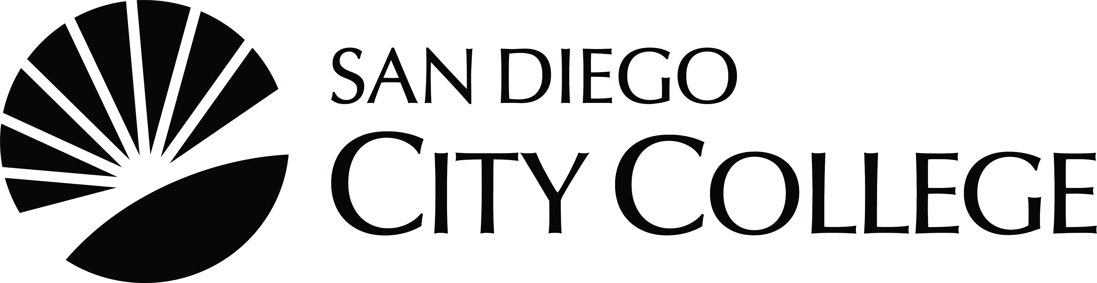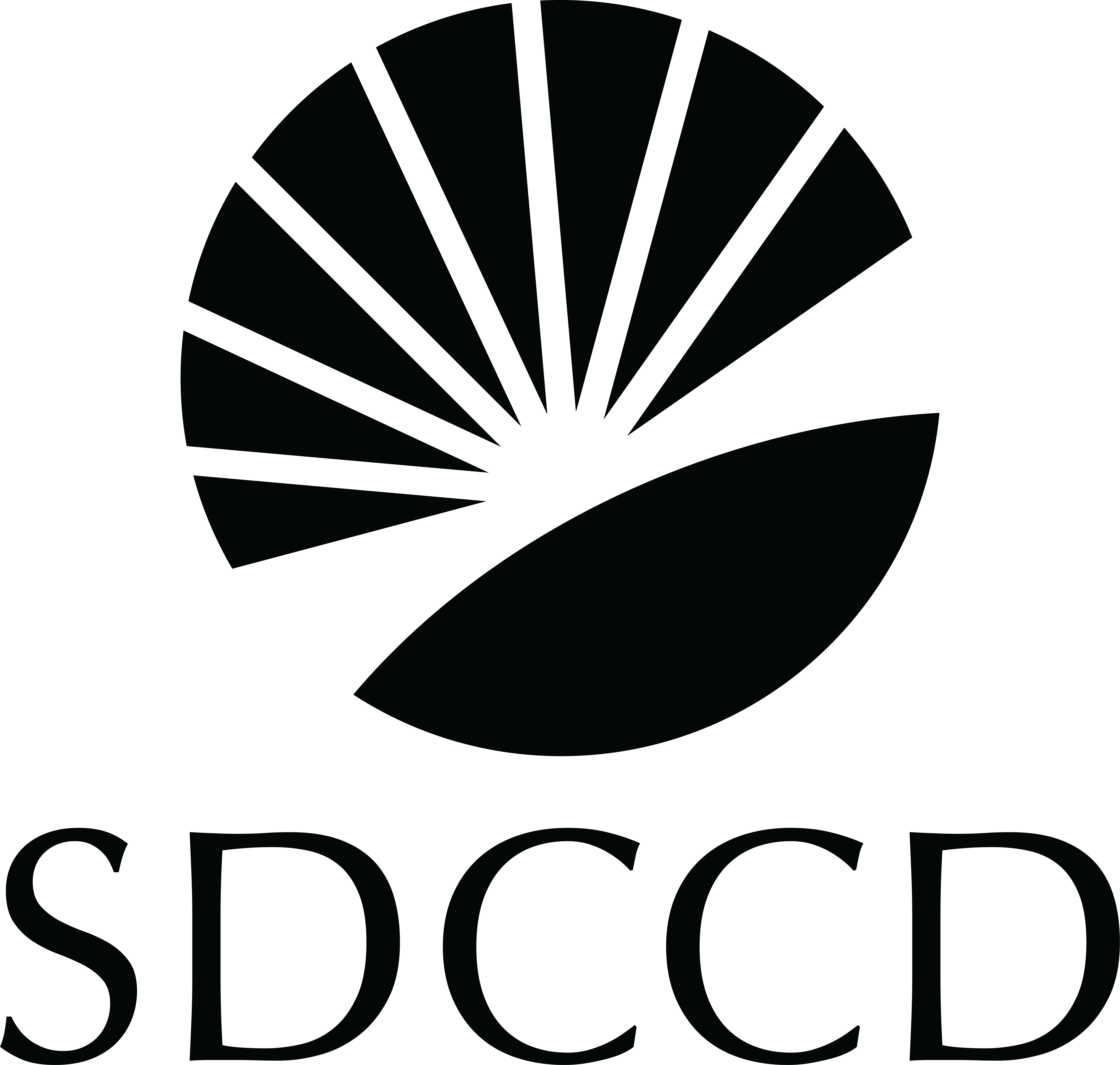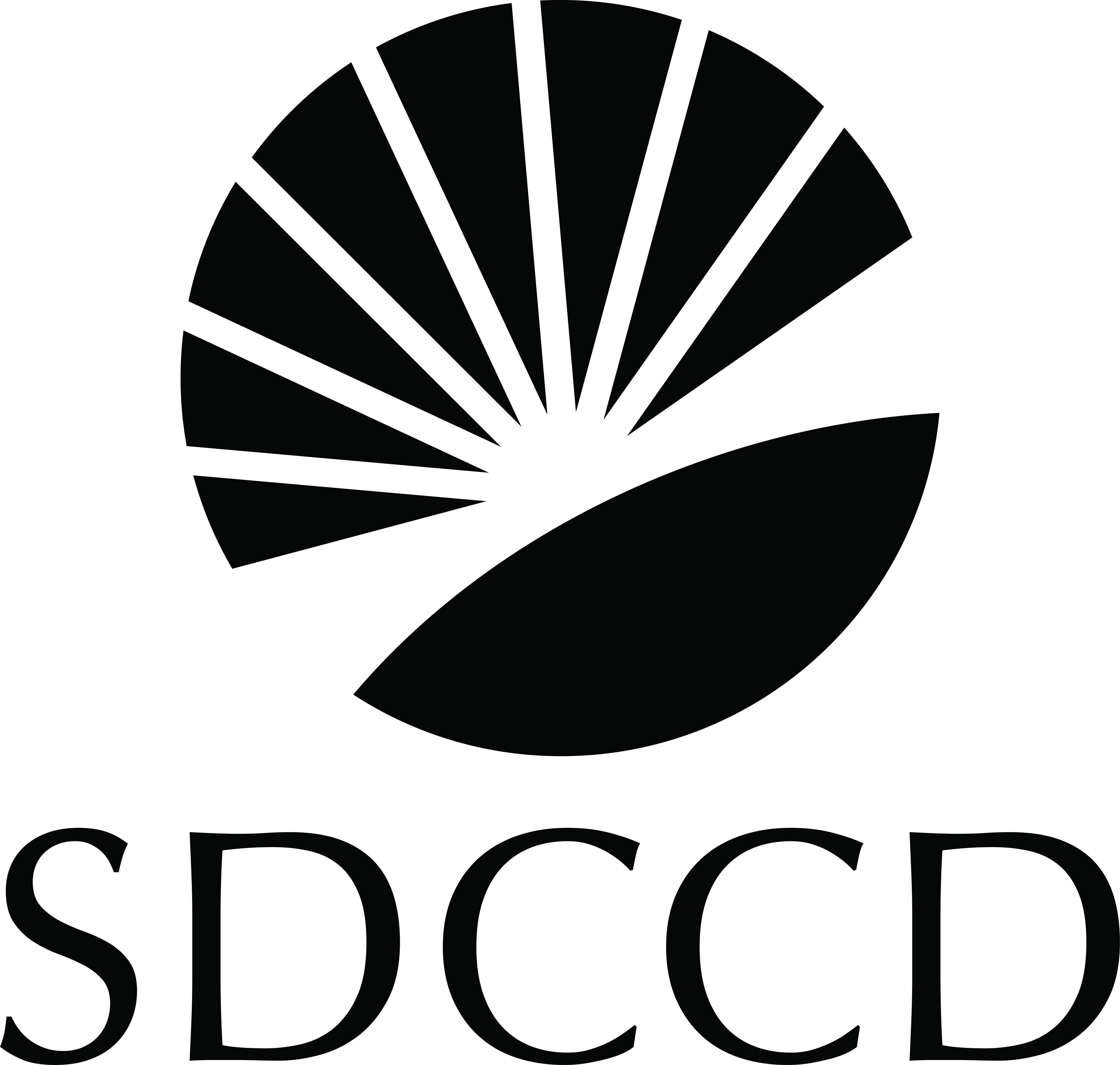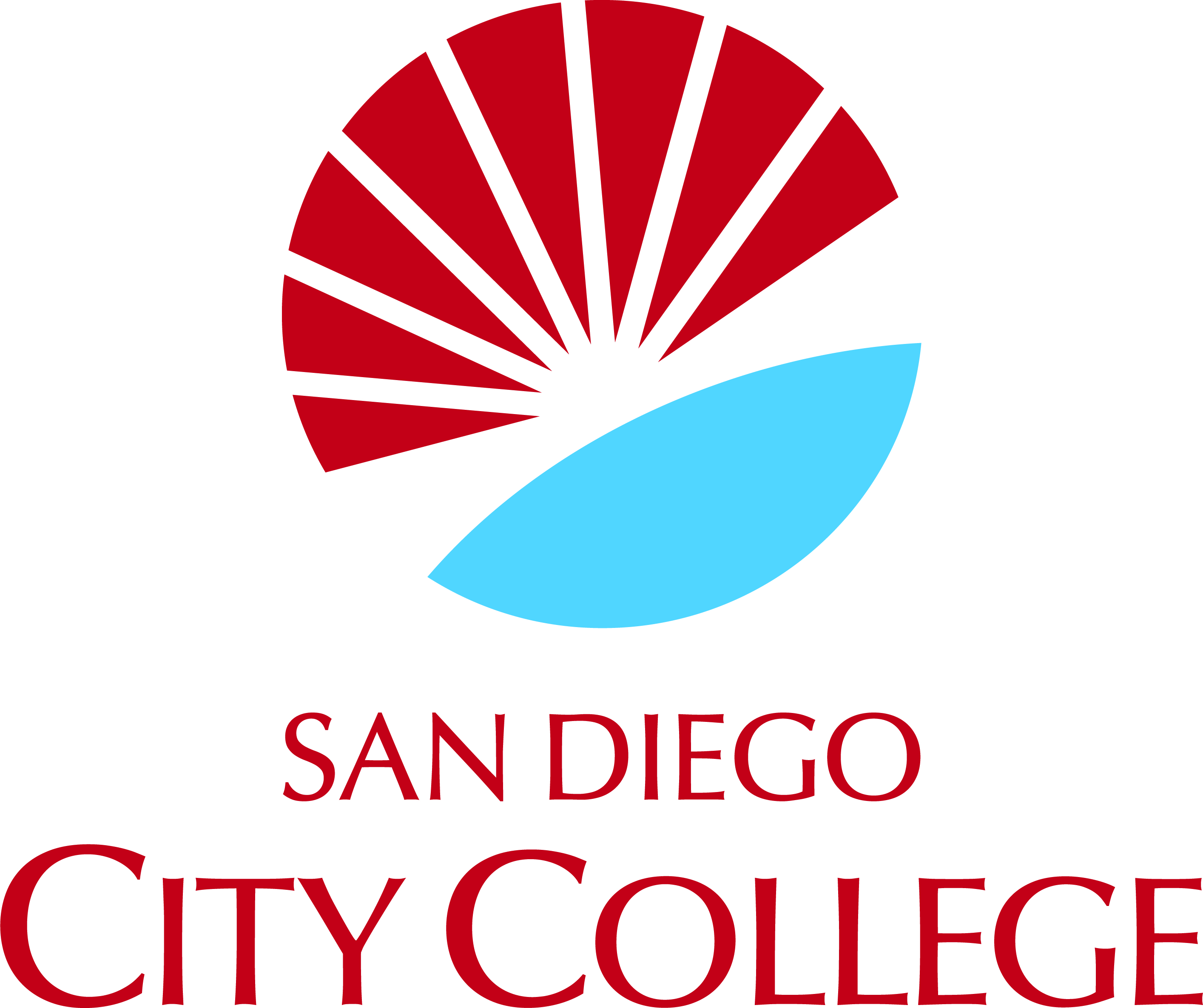 Sunburst logo with college colors and San Diego Community College District text at right and colleges below District text