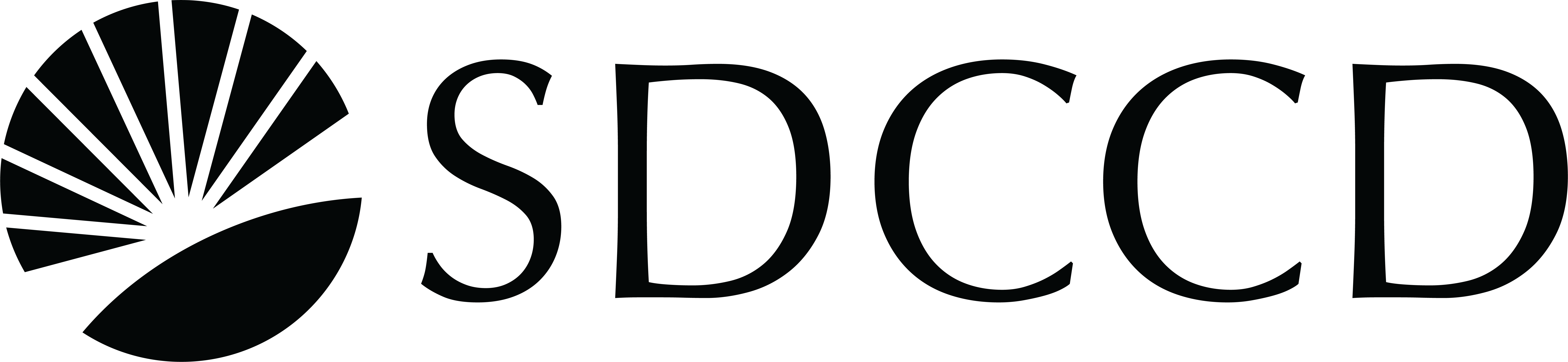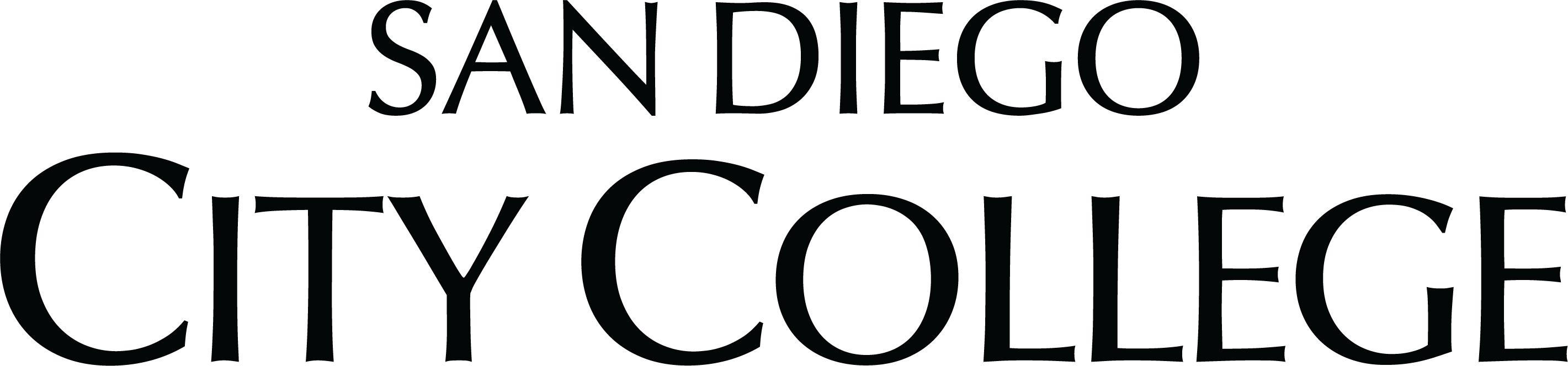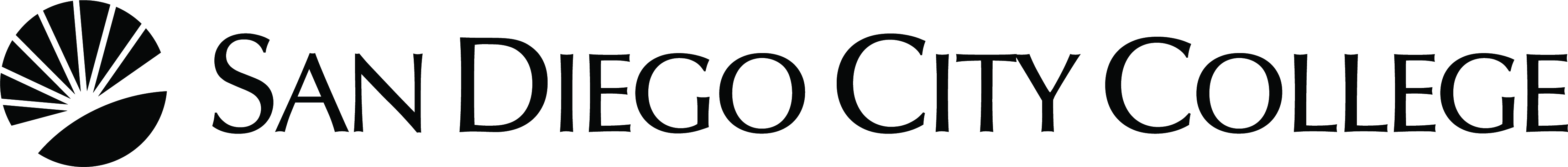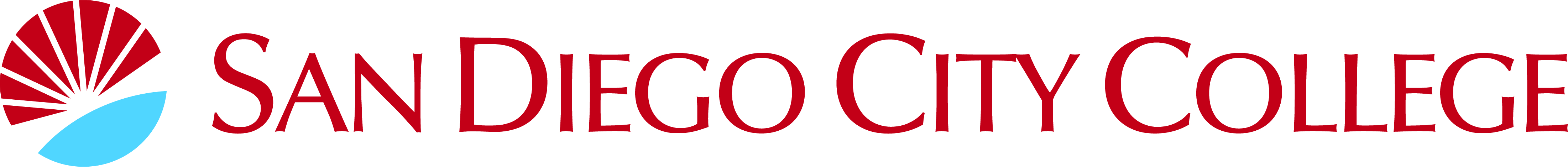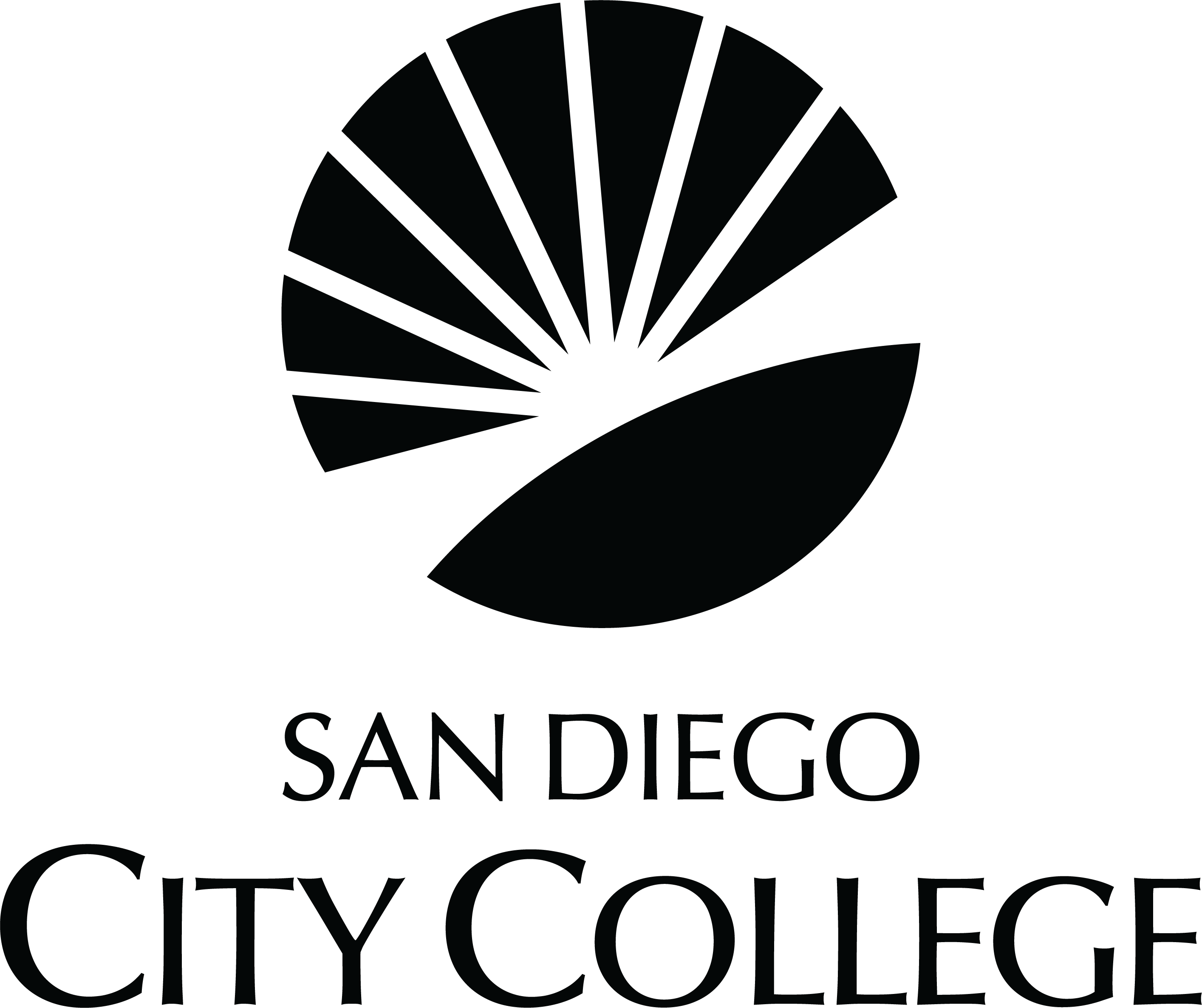 Sunburst logo with college colors and San Diego Community College District text at right and colleges below District text