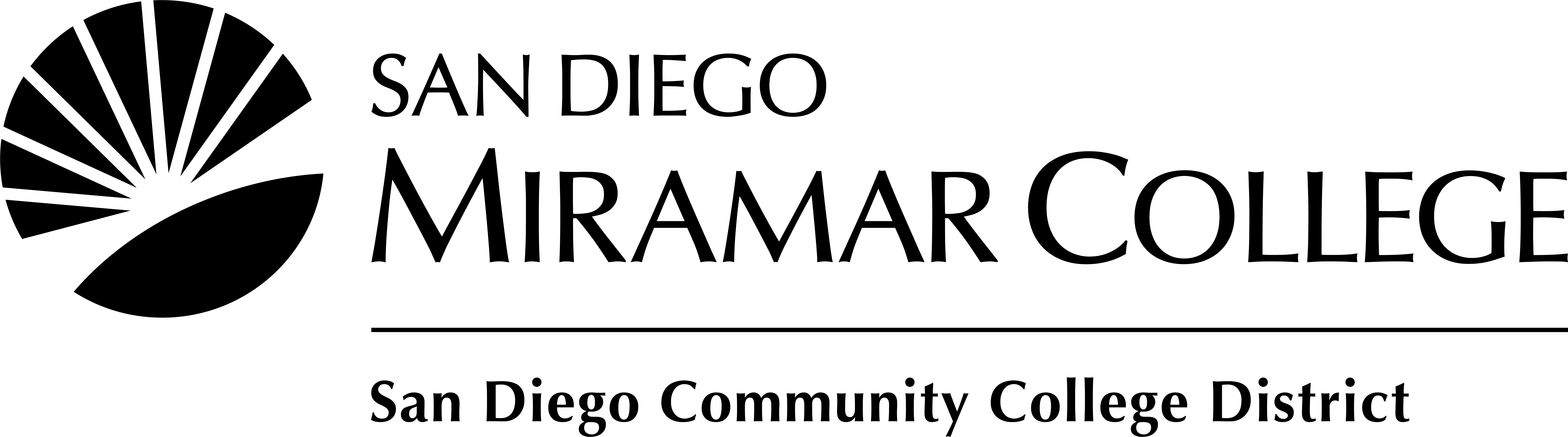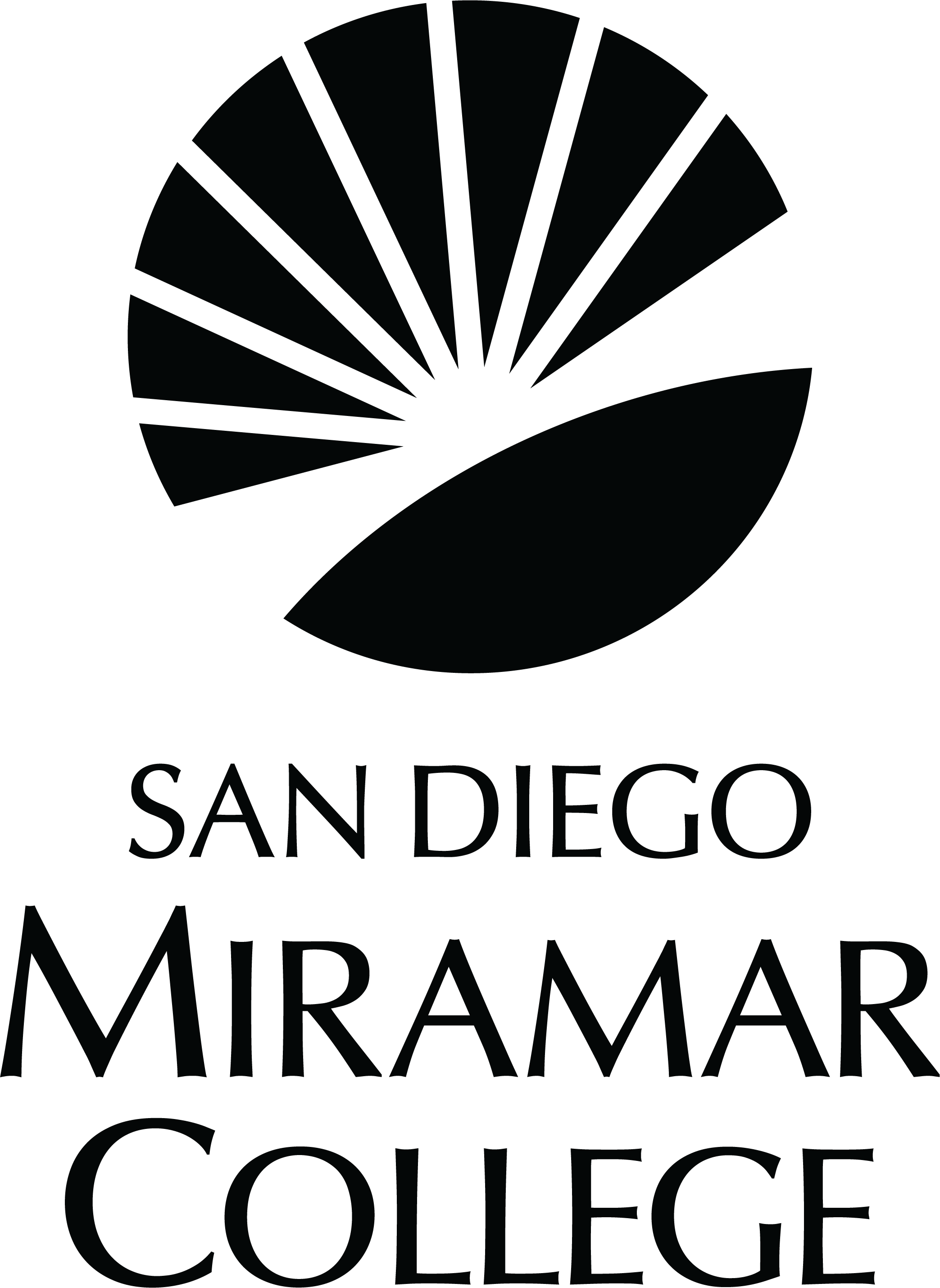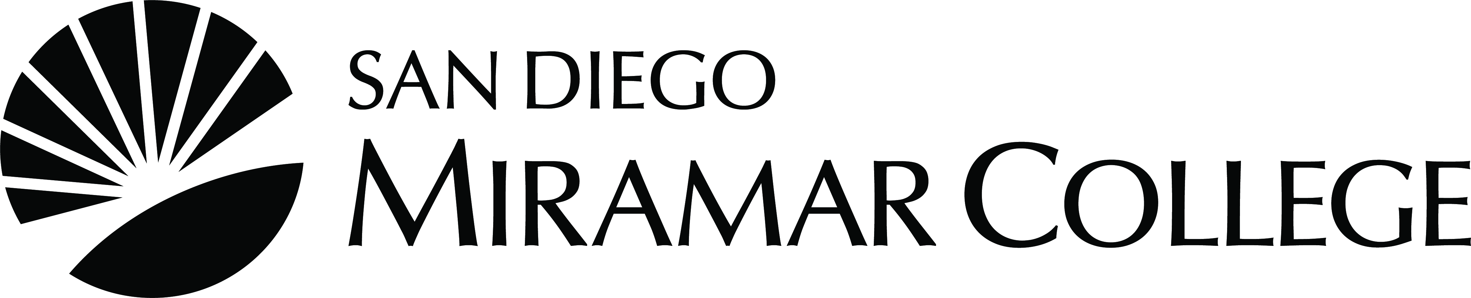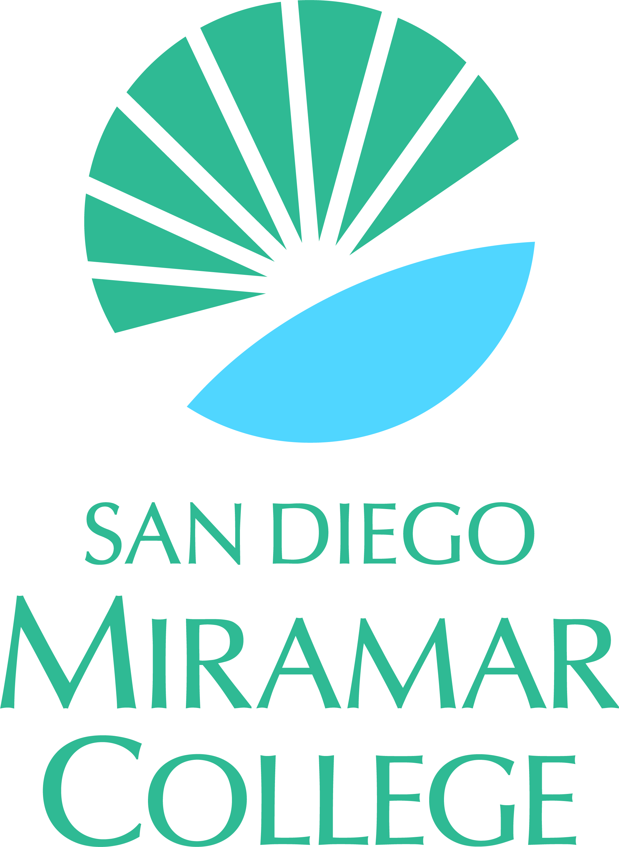 teal and cyan sunburst logo next to wordmark text san diego miramar college