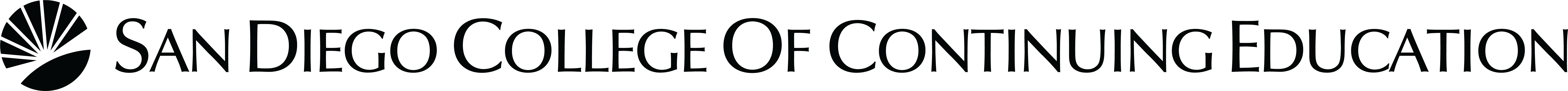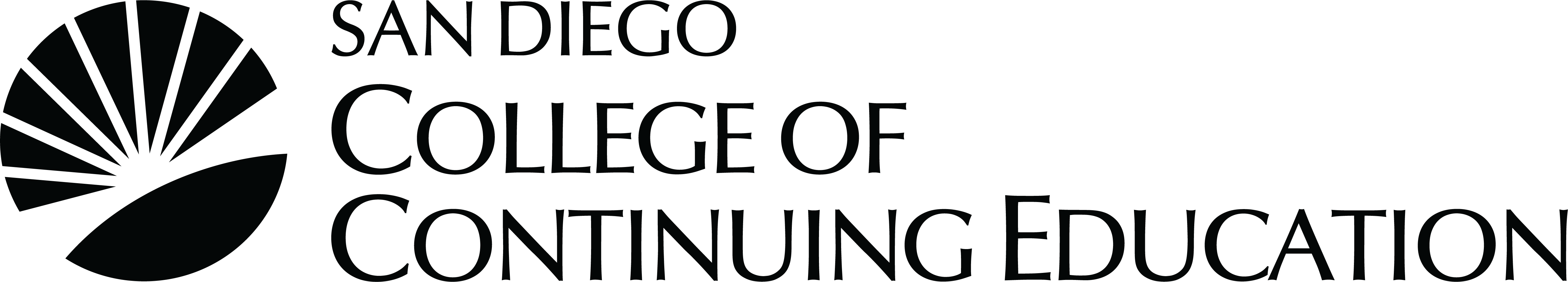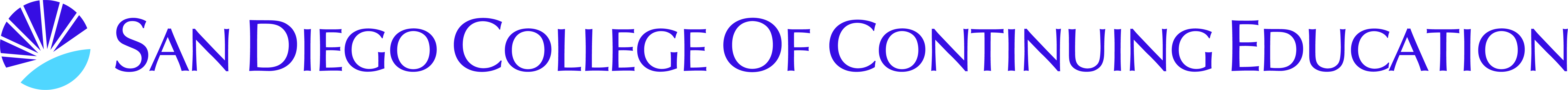 purple and cyan sunburst logo next to wordmark san diego college of continuing education color one line logo