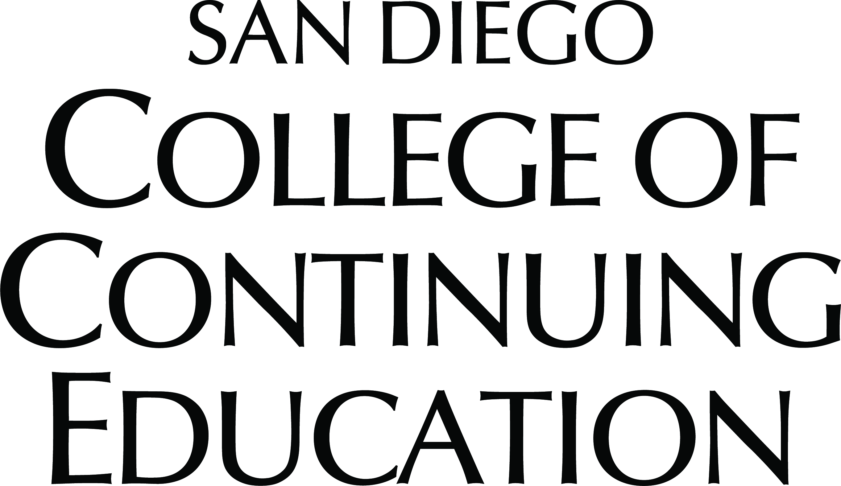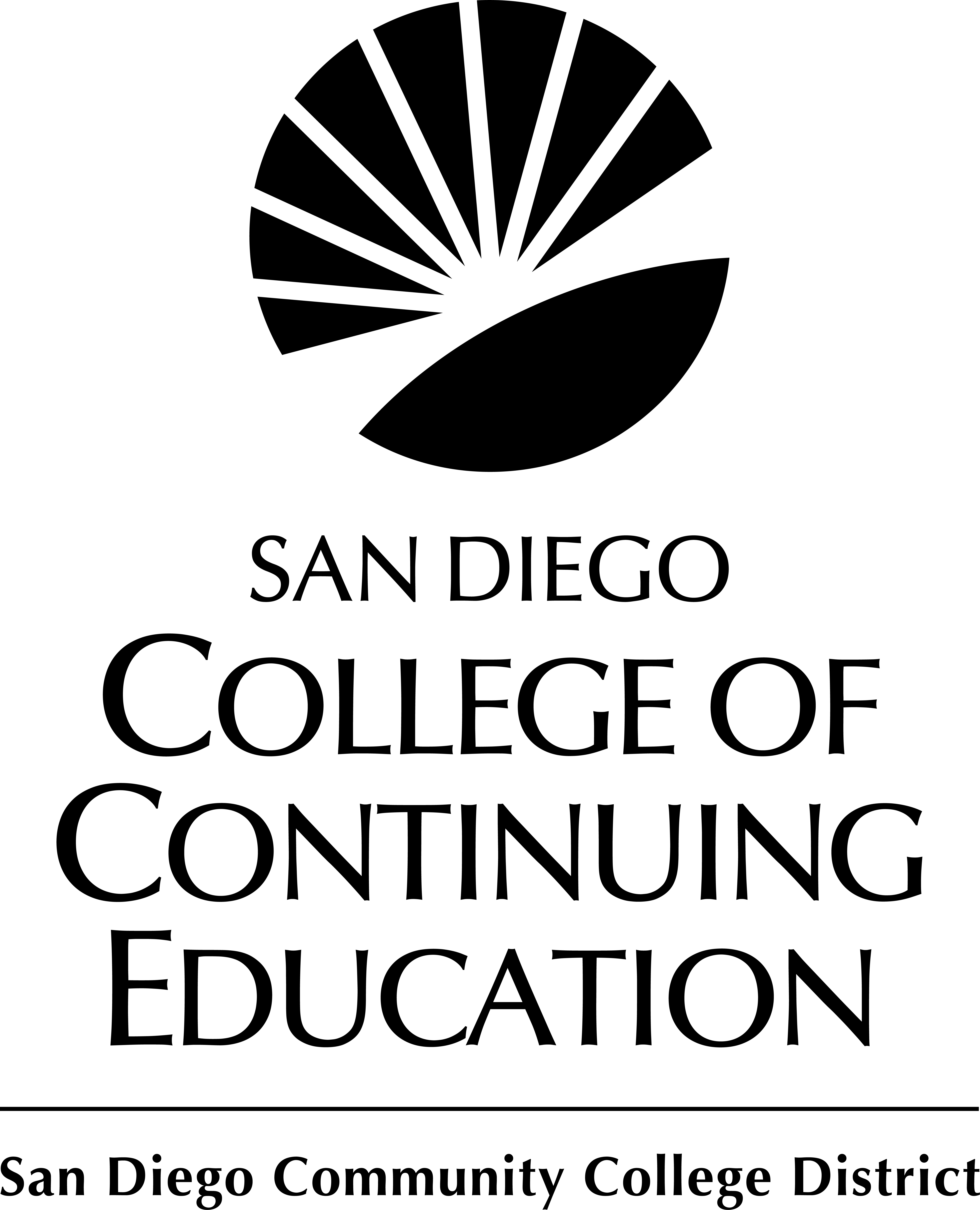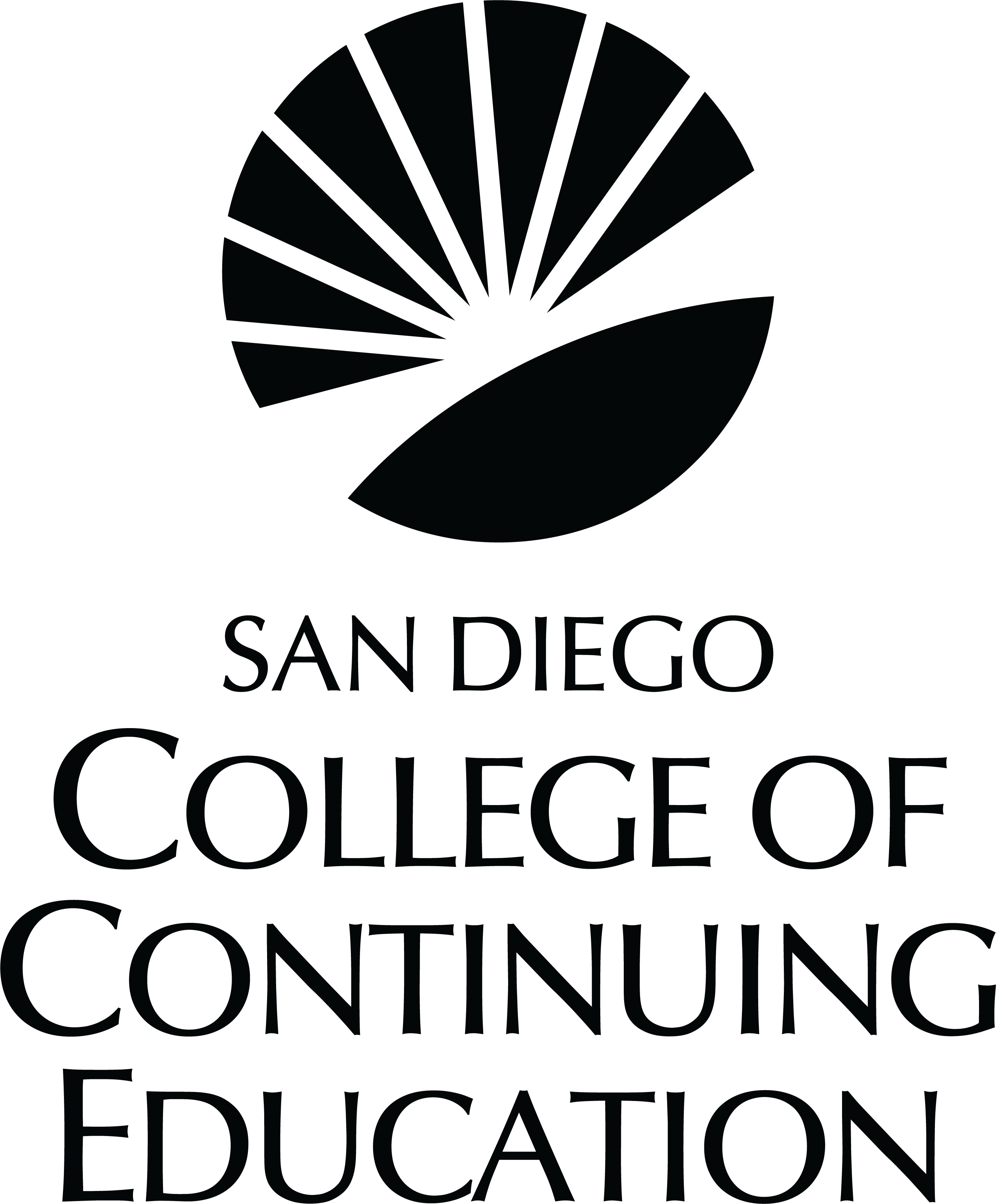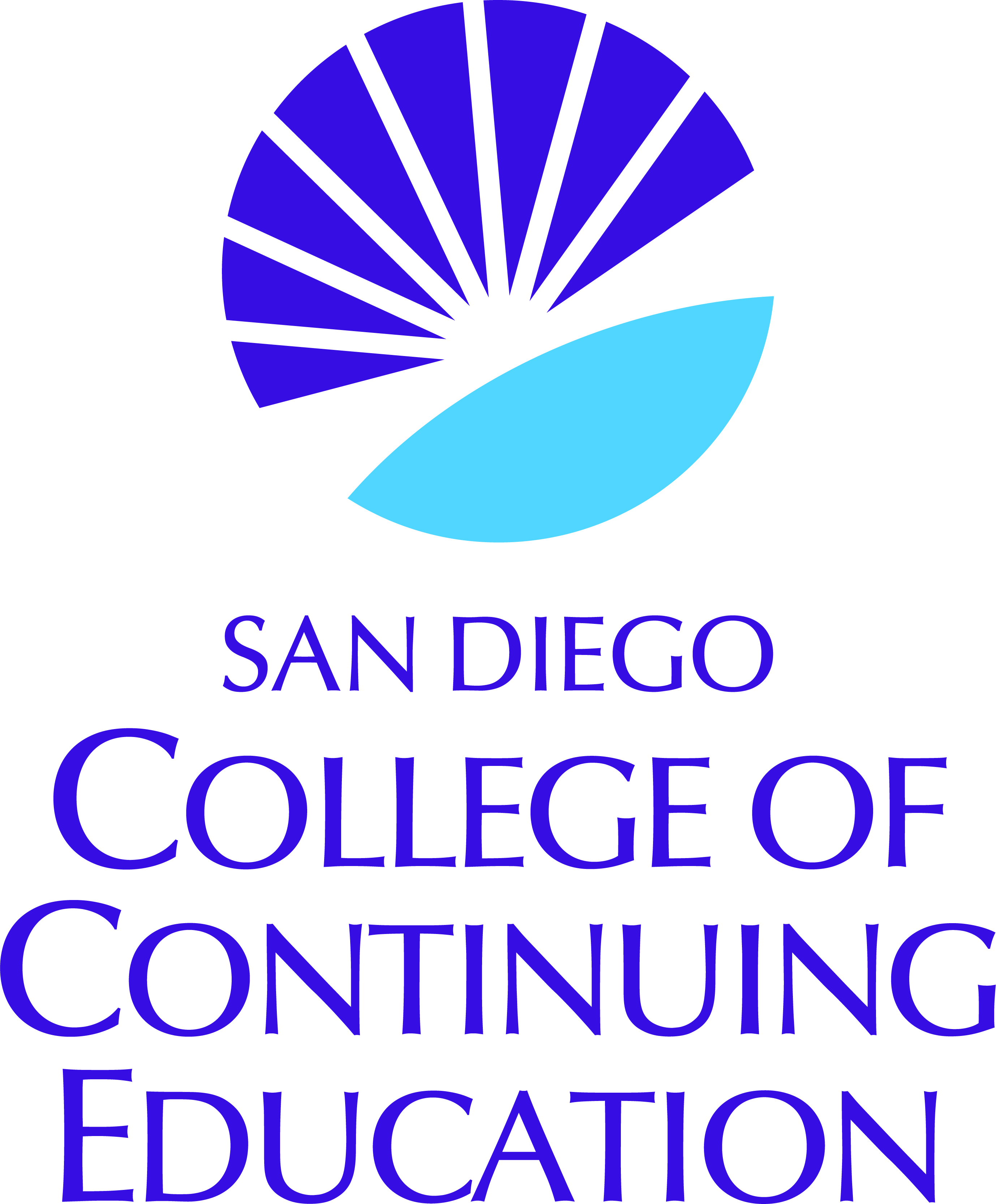 purple and cyan sunburst logo next to wordmark san diego college of continuing education color logo