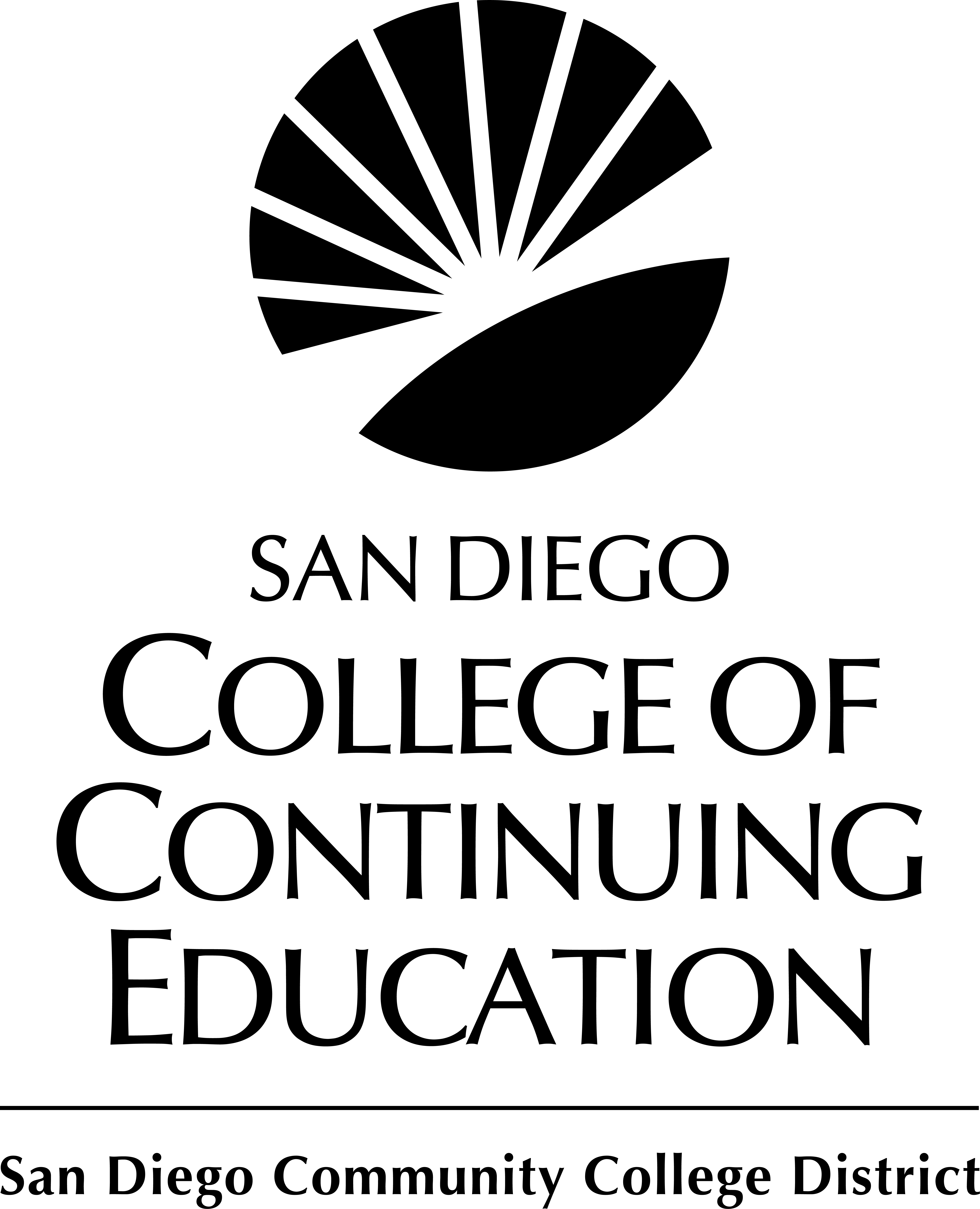 purple and cyan sunburst logo next to wordmark san diego college of continuing education color logo and district text